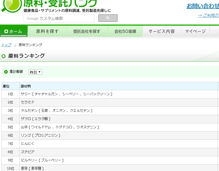 原料供給サイト大手の「原料・受託バンク」にて、「サジー」が原材料ランキングの2020年4月13日時点で1位を獲得しました。